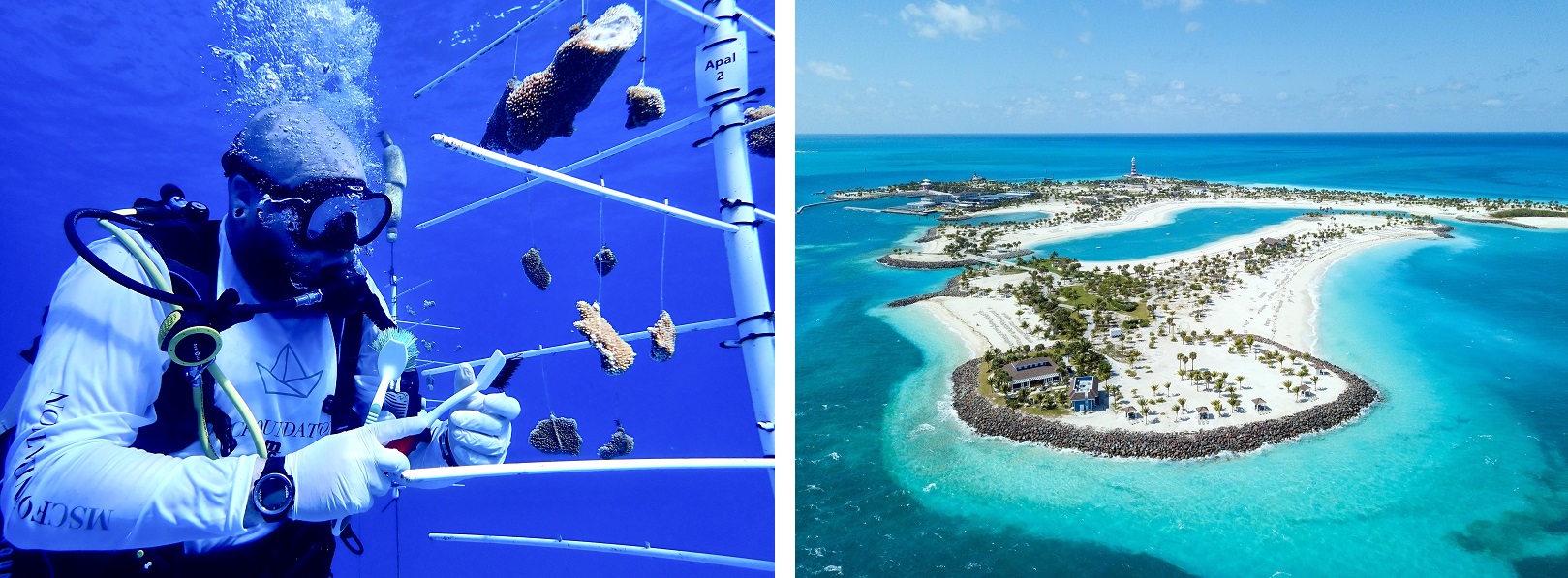 Keď v roku 2015 MSC Cruises prevzala zodpovednosť za Ocean Cay, tento bahamský ostrov trpel desaťročiami priemyselného využívania, vrátane ťažby aragonitového piesku. Plavebná spoločnosť sa pustila do ambicióznej iniciatívy obnovy, pričom úzko spolupracovala s miestnou vládou Bahám, poprednými univerzitami, morskými vedcami a ochranármi pri obnove ekosystémov ostrova.