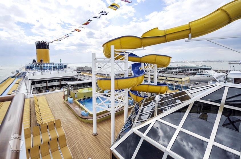 4 bazény (Lido Blue Moon so zaťahovacou strechou, Lido Via col Vento, Lido Incantesimo s vírivkou a toboganom so strechou, vodný park pre deti Squok), 3 vírivky, fitness club, sauna, spa Samsara, športové kurty, bežecká dráha.