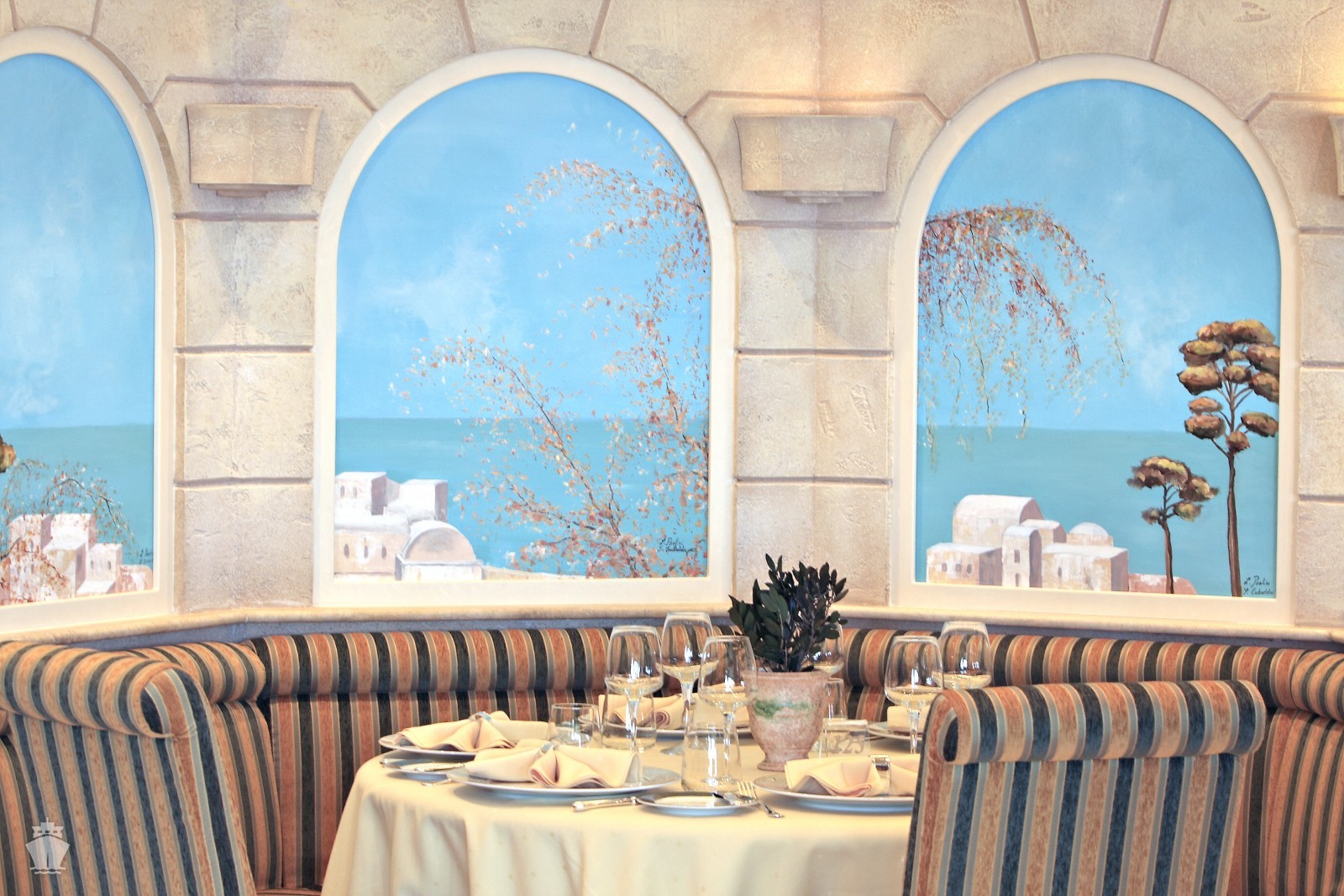 L'Olivo (15. paluba) - exkluzívna a la carte talianska reštaurácia pre členov Yacht clubu s kapacitou 136 hostím otvorená pre obedy a večere.