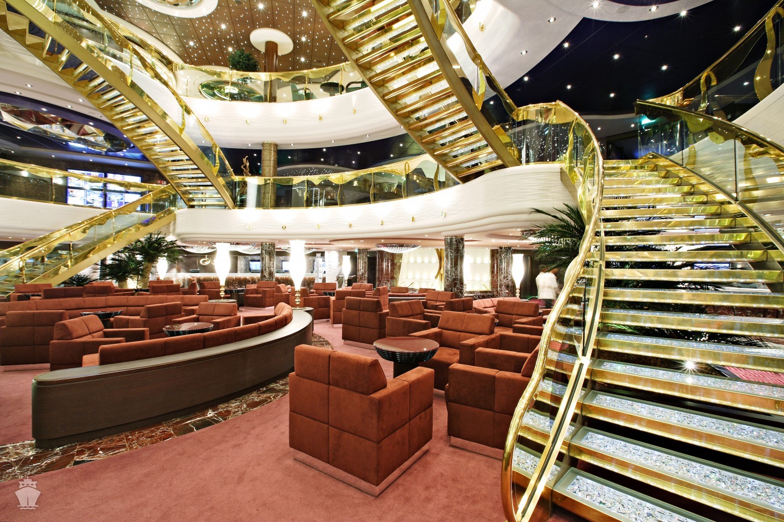 Zábava a ďalšie aktivity: divadlo The Strand Theatre, kino, 4D kino, galéria, knižnica, internetová kaviareň, vinotéka, poker room, fajčiarsky salónik, bary a kluby, obchody a butiky, kasíno Royal Palm, detské centrum a centrum pre mládež, video hry, simulátor F1 a diskotéka Club 33, Yacht Club