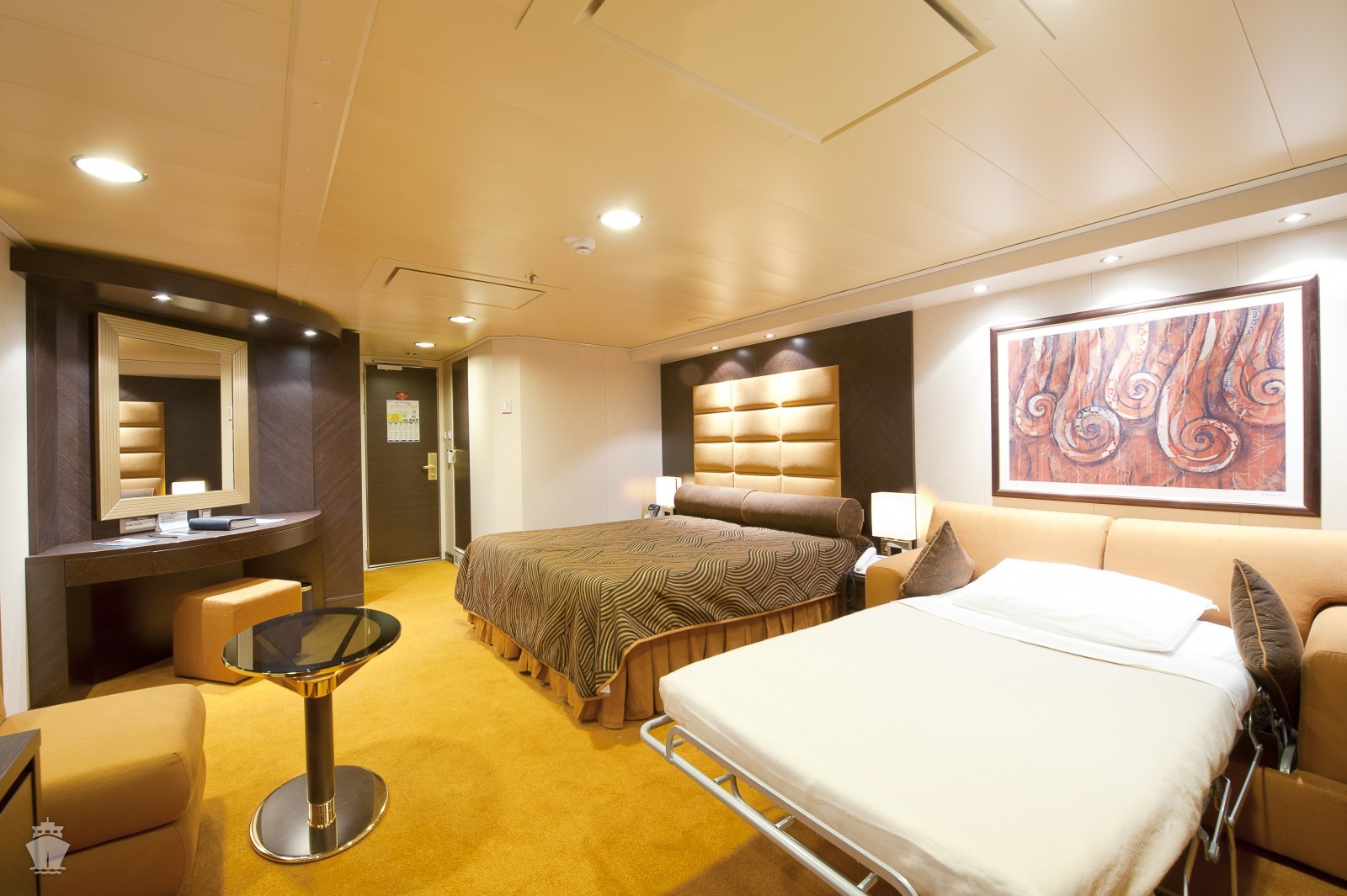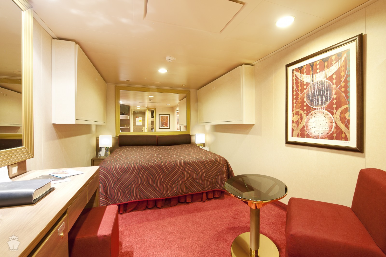 Vnútorná: 13-24m², kajuta s manželskou posteľou (na požiadanie 2 oddelené postele) a 1-2 vyklápacie horné lôžka. Klimatizácia, kúpeľňa so sprchou, toaletný stolík, skriňa, interaktívna TV, minibar, sejf, telefón, sušič na vlasy. Internetové pripojenie (za poplatok).