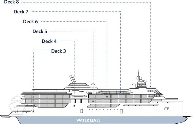Všetky kajuty sú apartmány, vybavené nadštandardne veľkými kúpeľňami a zariadené prírodnými, eco-friendly materiálmi. Poskytujú otvorený kontakt s exteriérom, aj vďaka "nekonečným" balkónom Infinite, ktoré boli po prvýkrát uvedené na Celebrity Edge.