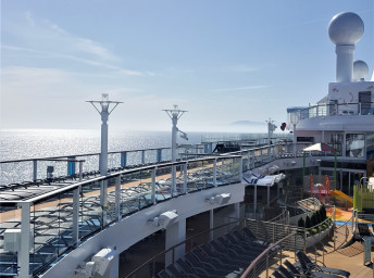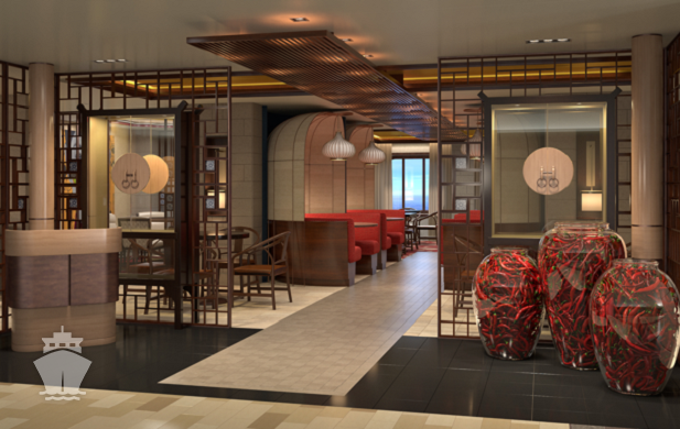 - Bufetová reštaurácia Windjammer Marketplace - Early Breakfast, raňajky, obed a večera. Asi o 1/5 väčšia v porovnaní s loďami Quantum-Class. Medziiným k dispozícii noodles, krájaná pizza, Teppanyaki a čínske hot pot jedlá.