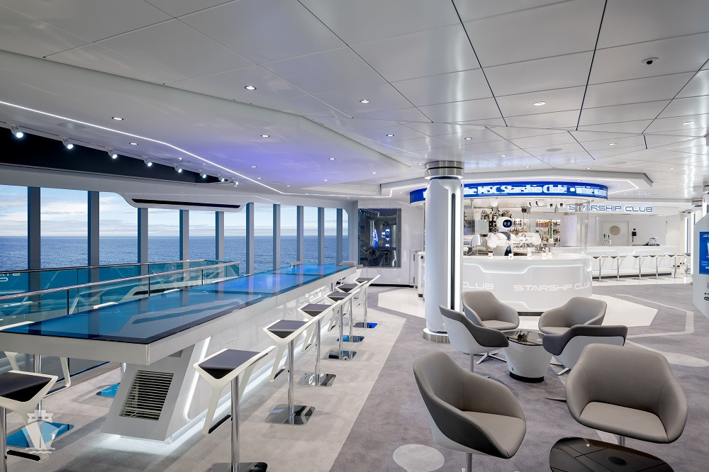 - Jedinečný a futuristický Starship bar s digitálnou umeleckou stenou a 3D hologramami. Protagonistom je Rob, humanoidný robotický barman, ktorý sa špecializuje na miešanie osobných koktailov. Interaktívny Rob hovorí 8 jazykmi. Mimochodom, v klube Starship sú aj skutoční barmani.