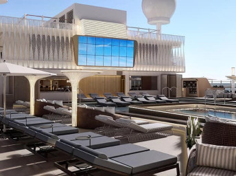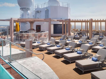 Priestranná terasa pri hlavnom bazéne sponúka množstvo miest na sedenie, niekoľko víriviek a detský aquapark. Pre tých, ktorí preferujú pokoj a relax, je k dispozícii priestor Infinity Beach s dvomi presklennými bazénmi, s pohodlným barovým sedením či plyšovými lehátkami.