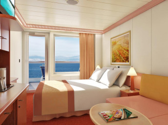 Základné vybavenie všetkých kajút: kúpeľňa so sprchou a WC, TV s plochou obrazovkou, telefón, elektrická zásuvka 110 AC, regulovateľná klimatizácia, postele Carnival Comfort, sušič na vlasy, bezpečnostná schránka, mini chladnička