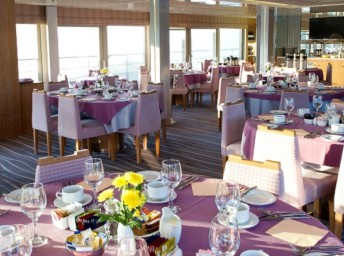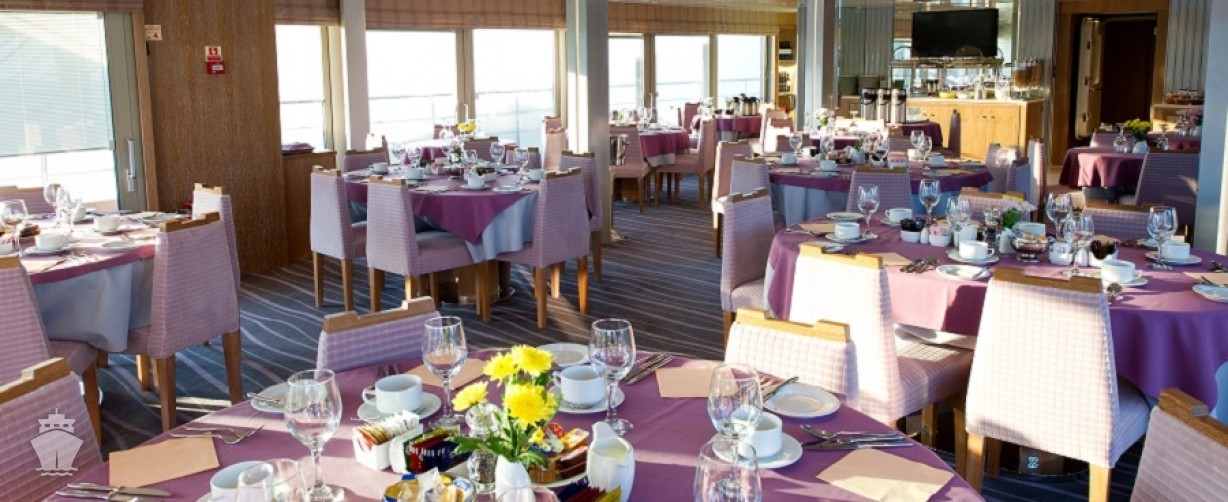 Ranajky - bufet v reštaurácii alebo, ak je pekné počasie, a podľa požiadaviek, na otvorenej hornej palube. Obed formou bohatého bufetu na hornej palube. V priemere dvakrát do týždňa sa koná barbecue priamo na palube alebo na brehu. Večere sa podávajú v jedálni, a la carte, bez stanoveného zasadacieho poriadku.