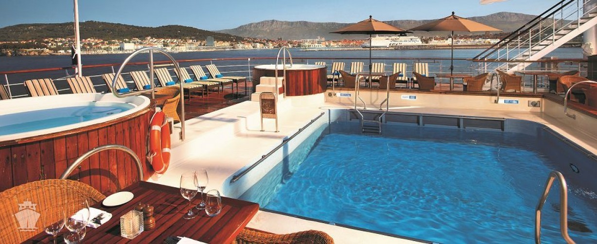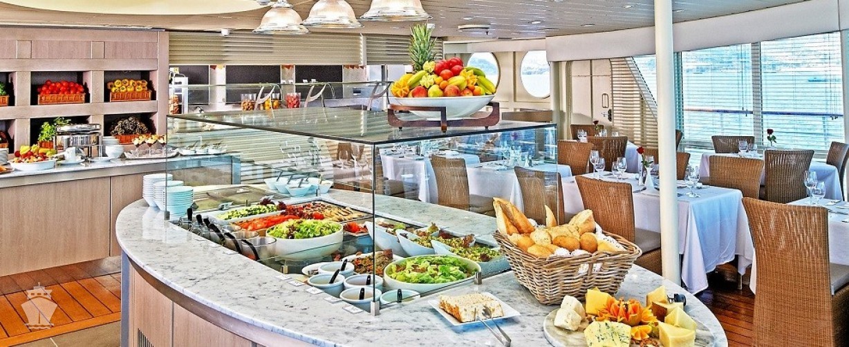 Ubytovanie: Kajuty sú navrhované pre maximálne pohodlie: posteľné prádlo z najlepšej egyptskej bavlny, mramorom vykladaná kúpeľňa, masážne sprchy, kozmetika L’Occitane, zvukový systém SoundDock Bose, televízor, minibar, sušič vlasov, bavlnené papuče a župan. Všetko vyrobené na zakázku pre vaše potešenie. Príjemné pastelové farby, čerstvé kvety vo váze, košík ovocia ...