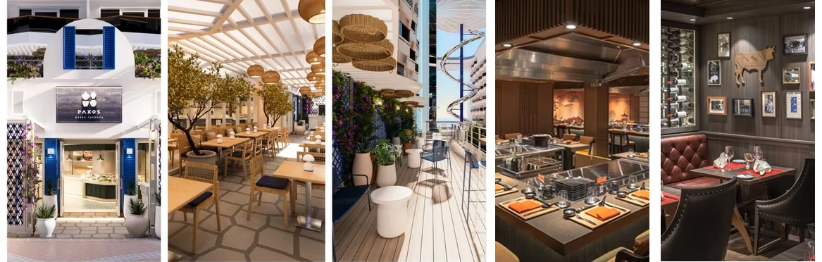 To, čo robí stravovanie na palube tejto lode také výnimočné, je to, že ani dve miesta nie sú rovnaké. Každá tematická reštaurácia má svoj vlastný charakter, štýl a kuchyňu, od výborných steakov až po japonskú a mexickú kuchyňu. A nechýbajú samozrejme miesta, kde si môžete len tak narýchlo dať kúsok pizze, hamburger alebo burrito.
