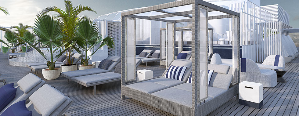 Na Celebrity EdgeSM bola predstavená exkluzívna oddychová zóna vyhradená pre hostí kategórií Suite, s názvom The Retreat. A teraz bude tento luxusný zážitok prenesený na celú flotilu. Na každej lodi bude slnečná terasa The Retreat Sundeck a sofistikovaný salón The Retreat Lounge — obe budú vytvorené v spolupráci s Kelly Hoppen.