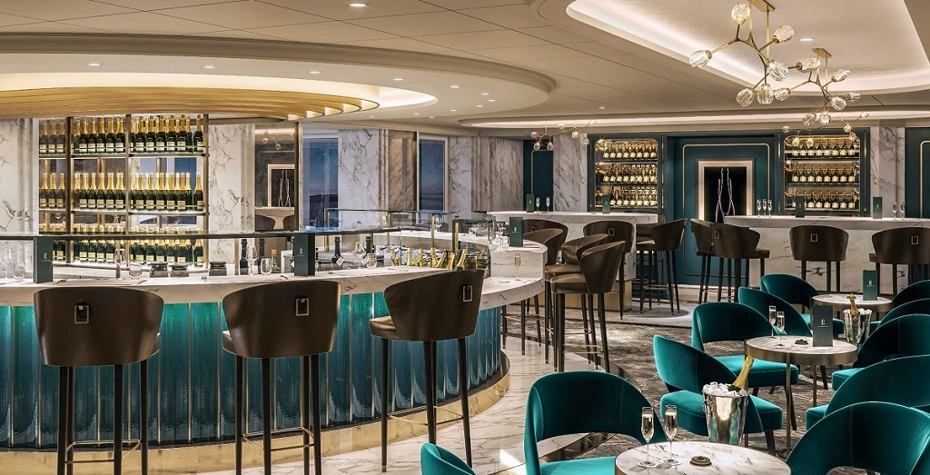 • Fizz - Champagne Bar vynáša bublinkové zážitky z prechádzajúcich lodí do vlastného vyhradeného lokálu. V prepychovom salóne s elegantnou atmosférou si doprajete dekadentné šampanské a šumivé vína, a k zahryznutiu výber kaviárov, chladených morských plodov a ďalších pochúťok.