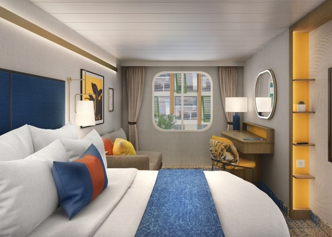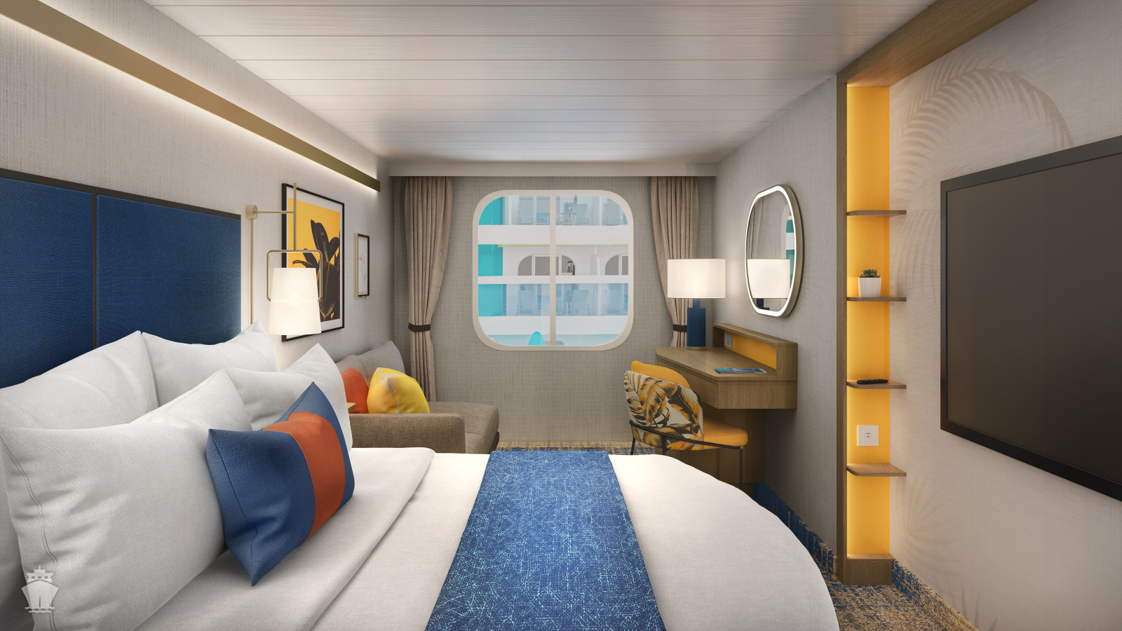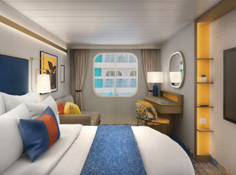 T5 - Vnútorná kajuta s oknom / Surfside Family 17 m². Neotvárateľné okno s výhľadom na štvrť Surfside. 8. paluba vpredu. Max 3-4 osoby. | 4 240 € 1 060 € za osobu |