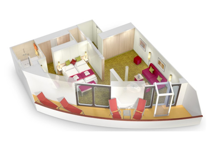 SX - Suite Panorama-Deluxe PREMIUM 54 m² (vrátane balkóna 12 m²). 12. paluba. Max 4 osoby. Cenový model Premium + výhody Suite. | 7 700 € 3 850 € za osobu |