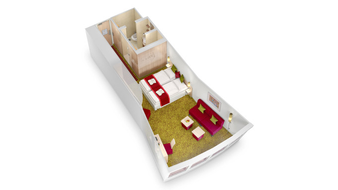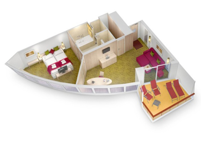 SD - Junior Suite PREMIUM od 24 m² + balkón 10 m². 7,8. paluba. Max 4 osoby. Cenový model Premium + výhody Junior Suite. | 5 670 € 2 835 € za osobu |