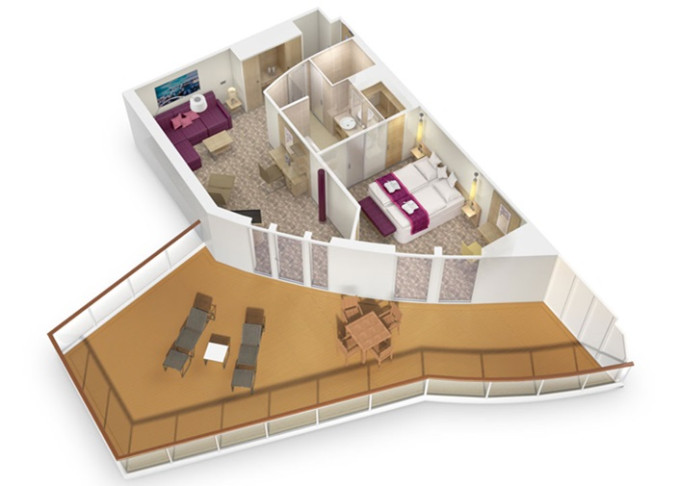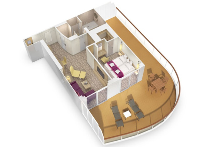 SB - Suite PREMIUM 45 m² + balkón 38 m². 17. paluba. Max 5 osôb. Cenový model Premium + výhody Suite. | 7 990 € 3 995 € za osobu |