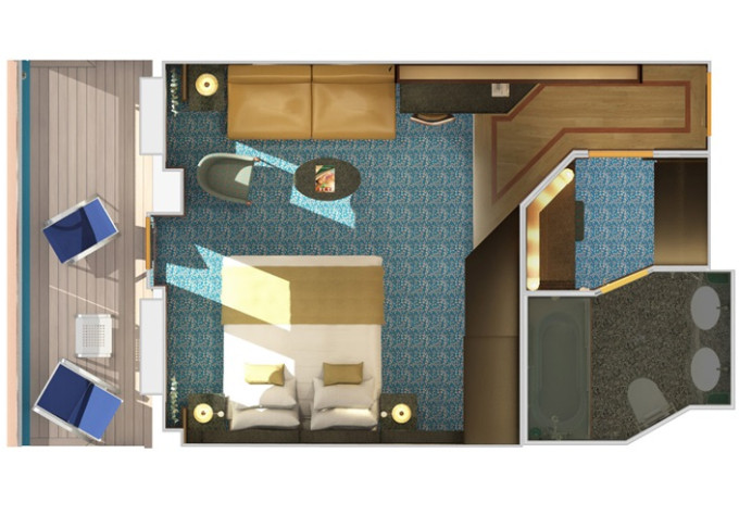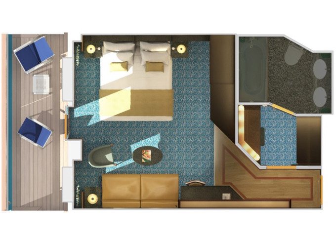 8S - Kajuta s balkónom Cloud 9 Spa 17 m² + balkón 3 m². 12. paluba vpredu. Voľný vstup do Spa a balíček Cloud 9 Spa. | 5 450 € 2 725 € za osobu |