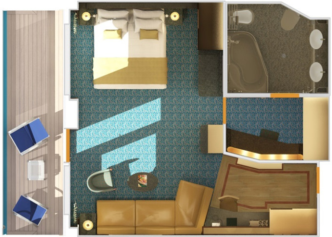 SS - Suite Cloud 9 Spa 25 m² + balkón 6 m². Výhody Suite. 11. paluba vpredu. Voľný vstup do Spa a balíček Cloud 9 Spa. | 9 674 € 4 837 € za osobu |