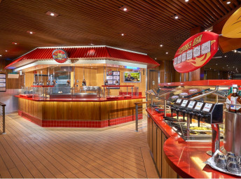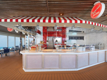 - Čapovaná voda, limonáda, ľadový čaj, káva, čaj, kakao z automatov v hlavnej reštaurácii Main Dining Room a bufetovej 24/7 reštaurácii Lido