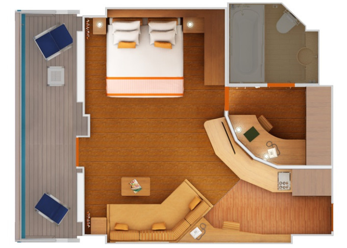 OS - Ocean Suite 25,5 m² + balkón 8 m². 5. až 8. paluba. Výhody Suite. | 3 984 € 1 992 € za osobu |