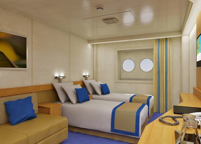 4J - Vnútorná kajuta s oknom / obmedzený výhľad od 17 m². Neotvárateľné okno / obmedzený výhľad. 3,6,7. paluba. | 1 154 € 577 € za osobu |