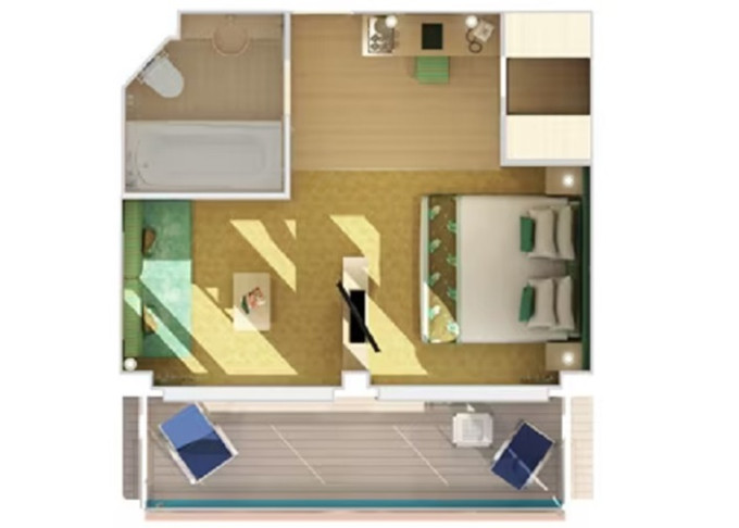 8S - Kajuta s balkónom Cloud 9 Spa 17 m² + balkón 3 m². 10. paluba vpredu. Voľný vstup do Spa a balíček Cloud 9 Spa. | 1 968 € 984 € za osobu |