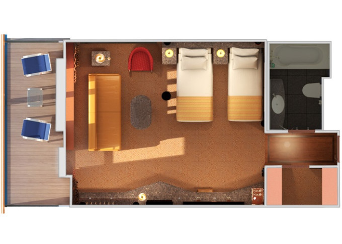 ES - Grand Suite s veľkým balkónom 30 m² + balkón 10 m². 6. paluba stred. Výhody Suite. | 1 572 € 786 € za osobu |