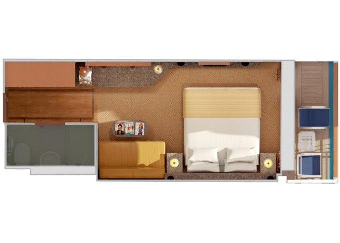 6E - Vonkajšia kajuta 17 m². Neotvárateľné okno. 7. paluba vpredu, stred. | 636 € 318 € za osobu |