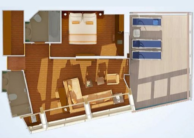 OS - Ocean Suite 26 m² + balkón 6 m². 7. paluba stred, vpredu. Max 4 osoby. Výhody Suite. | 1 468 € 734 € za osobu | ||