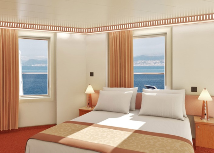 6J - Kajuta s oknom Scenic 21 m². Veľké panoramatické neotvárateľné okno. 9. paluba vpredu. | 622 € 311 € za osobu |