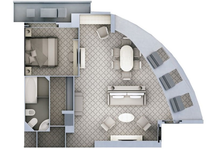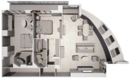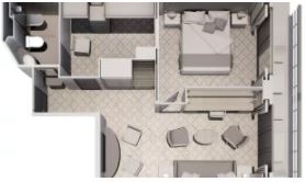 R1 - Royal Suite 1 69 m² (vrátane balkóna 12 m²). 6. paluba. Max 3 osoby. | 149 200 € 37 300 € za osobu |