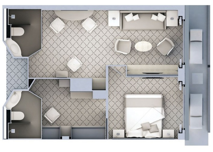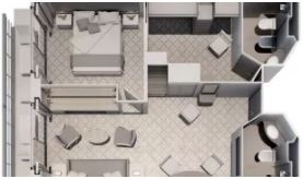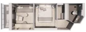 R1 - Royal Suite 1 69 m² (vrátane balkóna 12 m²). 6. paluba. Max 3 osoby. | 74 600 € 37 300 € za osobu |