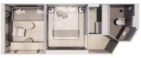 O2 - Owner's Suite 2 77 m² (vrátane balkóna 9 m²). Owners Suite O1 spojená s Vista Suite. 7. paluba. Max 5 osôb. | 126 000 € 63 000 € za osobu |