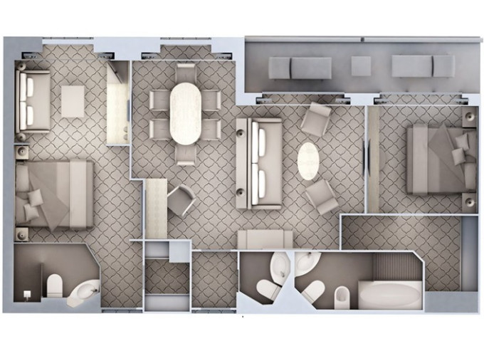 R2 - Royal Suite 2 96 m² (vrátane 2 balkónov 16,5 m² spolu). 6. paluba. Max 6 osôb. | 116 800 € 116 800 € za osobu |