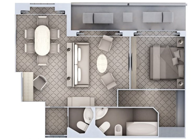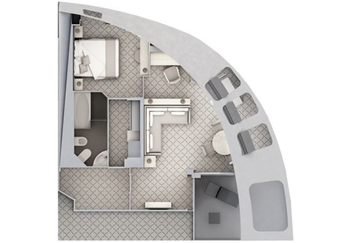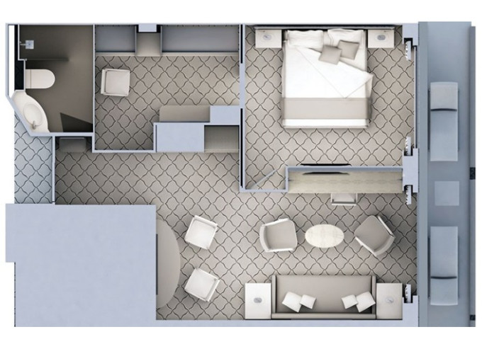 R1 - Royal Suite 1 69 m² (vrátane balkóna 12 m²). 6. paluba. Max 3 osoby. | 111 900 € 37 300 € za osobu |