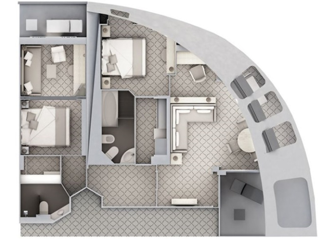 O2 - Owner's Suite 2 77 m² (vrátane balkóna 9 m²). Owners Suite O1 spojená s Vista Suite. 7. paluba. Max 5 osôb. | 252 000 € 63 000 € za osobu |