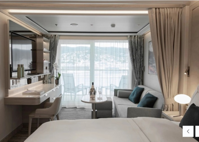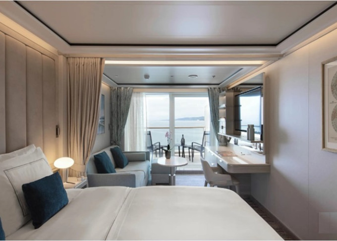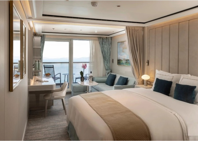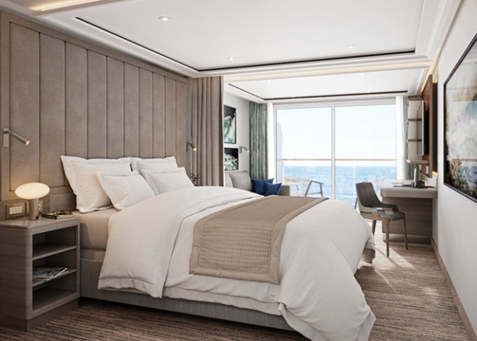 13 kategórií, 364 priestranných kajút/suít. Každá suita má okná od podlahy až po strop so súkromnou sklenenou balustrádou