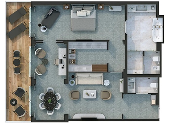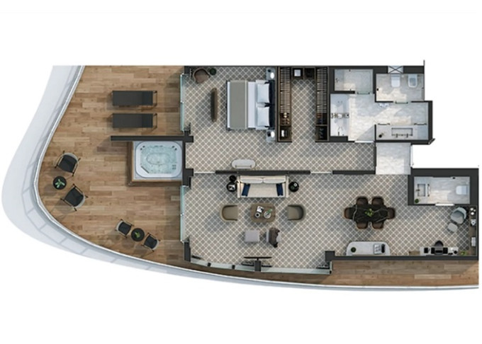 O1 - Owner's 1 Suite 98 m² (vrátane balkóna 16 m²). Spálňa, oddelená obývacia a jedálenská časť, kúpeľňa s vírivkou. 8. paluba stred. Max 3 osoby. | 100 600 € 100 600 € za osobu |