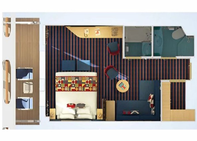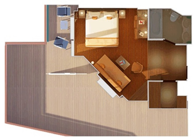 HL - Kajuta Havana s balkónom Premium 17 m² + balkón 7 m². 6. paluba vzadu. Tropický štýl, vstup do exkluzívnej zóny Havana. | 2 360 € 1 180 € za osobu | ||