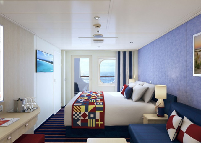 FM - Kajuta s balkónom Cove Family Harbour 17 m² + balkón s chráneným výhľadom 3,5 m². 2. paluba vzadu. Námorný štýl, špeciálne služby pre rodiny s deťmi. | 1 798 € 899 € za osobu |