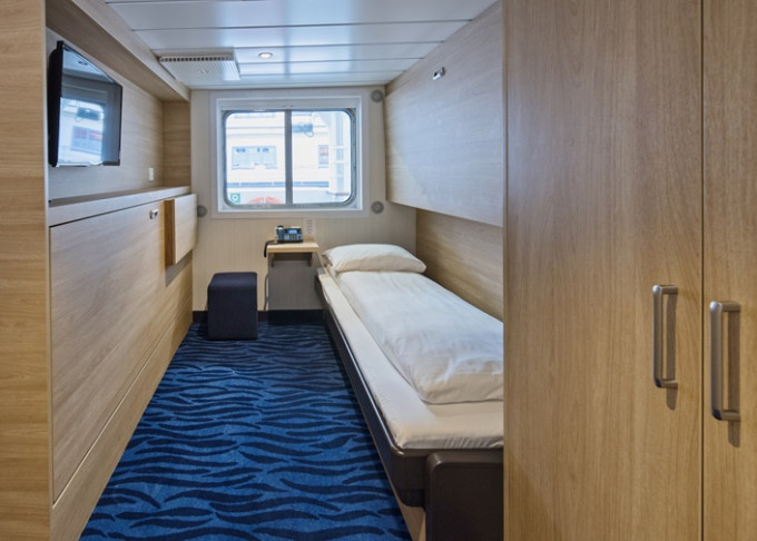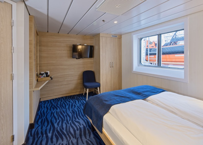 AJ - Vonkajšia kajuta Polar / obmedzený výhľad 8-9 m². Neotvárateľné okno s obmedzeným výhľadom. Spodné a horné lôžko.Tv, sejf, varná kanvica. Max 2 osoby. | 14 718 € 7 359 € za osobu |