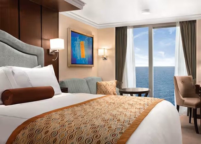 - Owner’s Suites: súkromný obed v apartmáne od 12:00 do 14:00 (voliteľné) v deň nalodenia