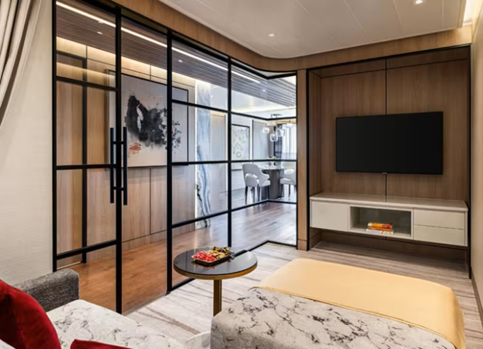 - Owner’s Suites: súkromný obed v apartmáne od 12:00 do 14:00 (voliteľné) v deň nalodenia