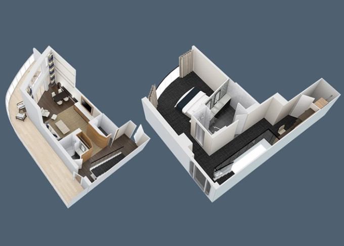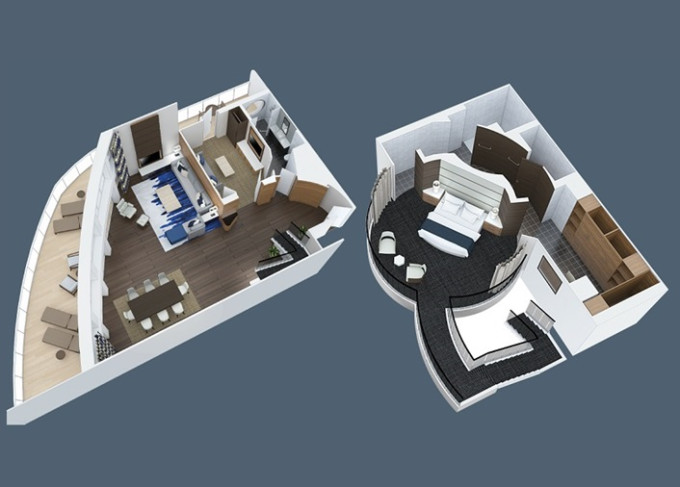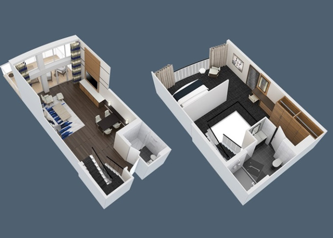 OL - Owner Loft Suite s balkónom 90 m² + balkón 46 m². 2-podlažný apartmán. 8. paluba. Max 4 osoby. Výhody Royal Suite Star Class. 17 436 € 8 718 € za osobu
