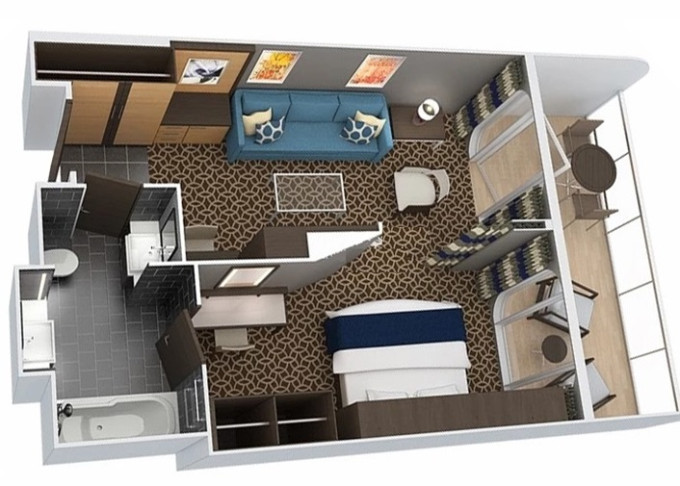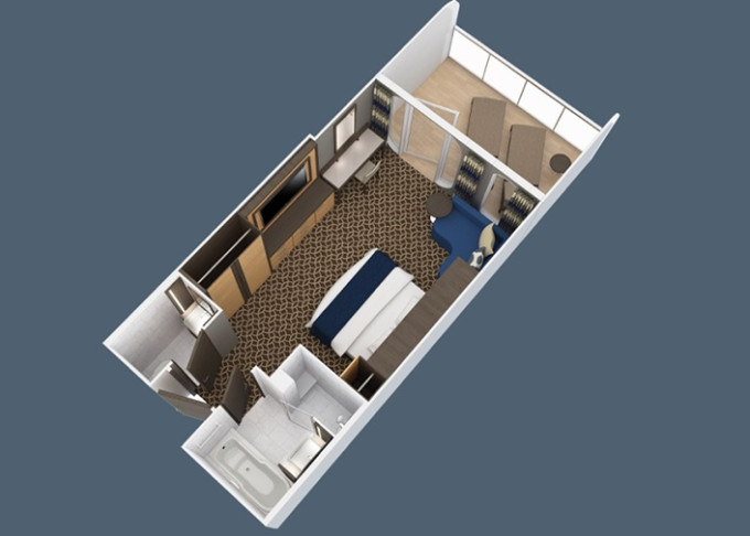 2F - Kajuta s balkónom Super Studio 11 m² + balkón 5 m². 6/7. paluba. Max 1 osoba. 7 032 € 2 344 € za osobu