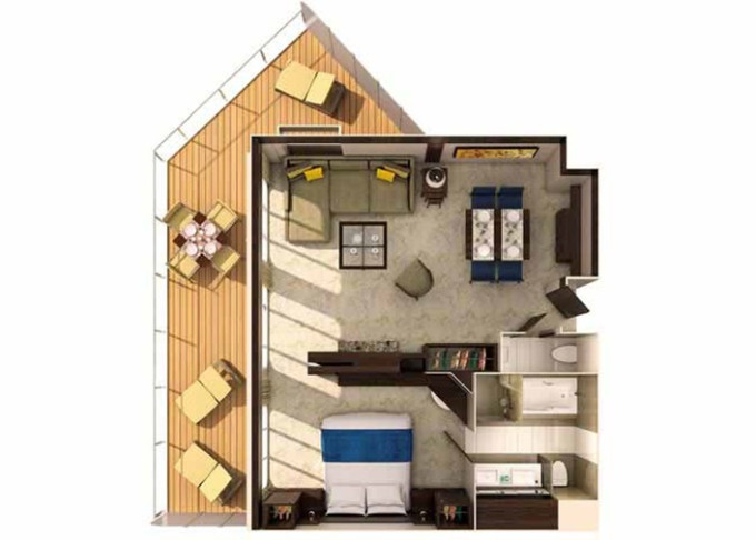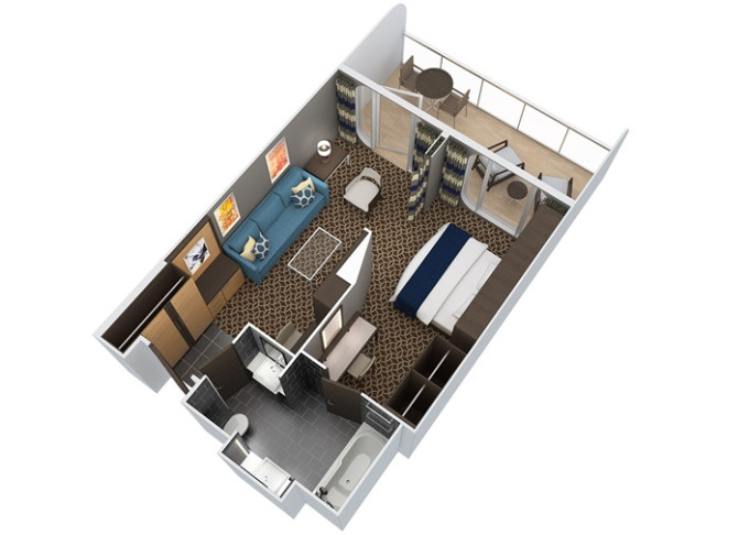 J3 - Junior Suite s balkónom 25 m² + balkón 7,5 m². Max 4-5 osôb. Výhody Royal Suite Sea Class. 5 168 € 2 584 € za osobu