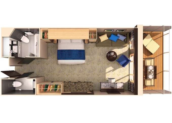 2F - Kajuta s balkónom Super Studio 11 m² + balkón 5 m². 6/7. paluba. Max 1 osoba. 6 466 € 3 233 € za osobu