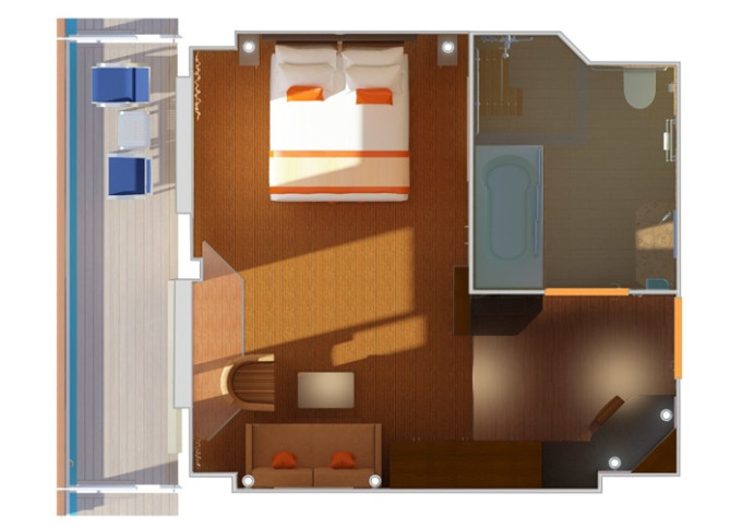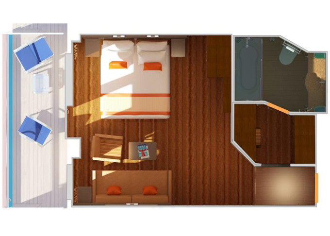 8S - Kajuta s balkónom Cloud 9 Spa 18 m² + balkón 3 m². 11. paluba vpredu. Voľný vstup do Spa a balíček Cloud 9 Spa. | 1 078 € 539 € za osobu | ||