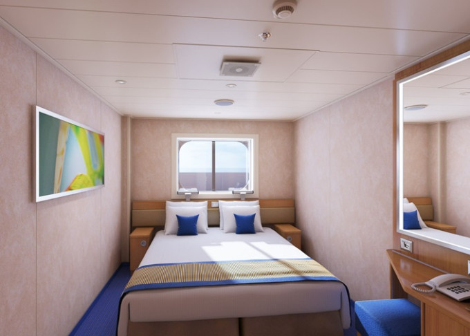 Vybavenie všetkých kajút: kúpeľna s WC, telefón, zástrčky 110 AC, nastaviteľná vzduchová klimatizácia, posteľ Carnival Comfort, sušič na vlasy, bezpečnostná schránka, skriňa, stolík, TV s plochou obrazovkou a mini chladnička (bez náplne).