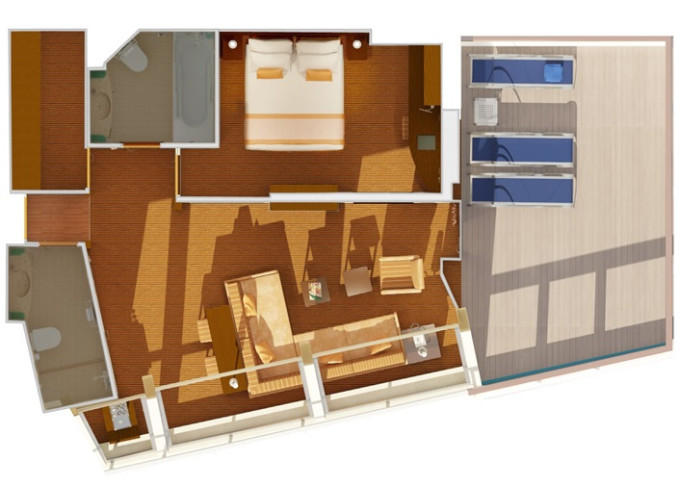 CS - Captain's Suite 52 m² + balkón 24 m². 9. paluba. Max 5 osôb. Výhody Suite. | 4 252 € 2 126 € za osobu |