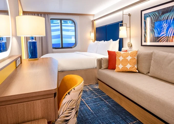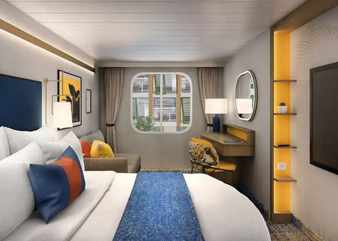 T5 - Vnútorná kajuta s oknom / Surfside Family 17 m². Neotvárateľné okno s výhľadom na štvrť Surfside. 8. paluba vpredu. Max 4 osoby. | 2 962 € 1 481 € za osobu | ||
